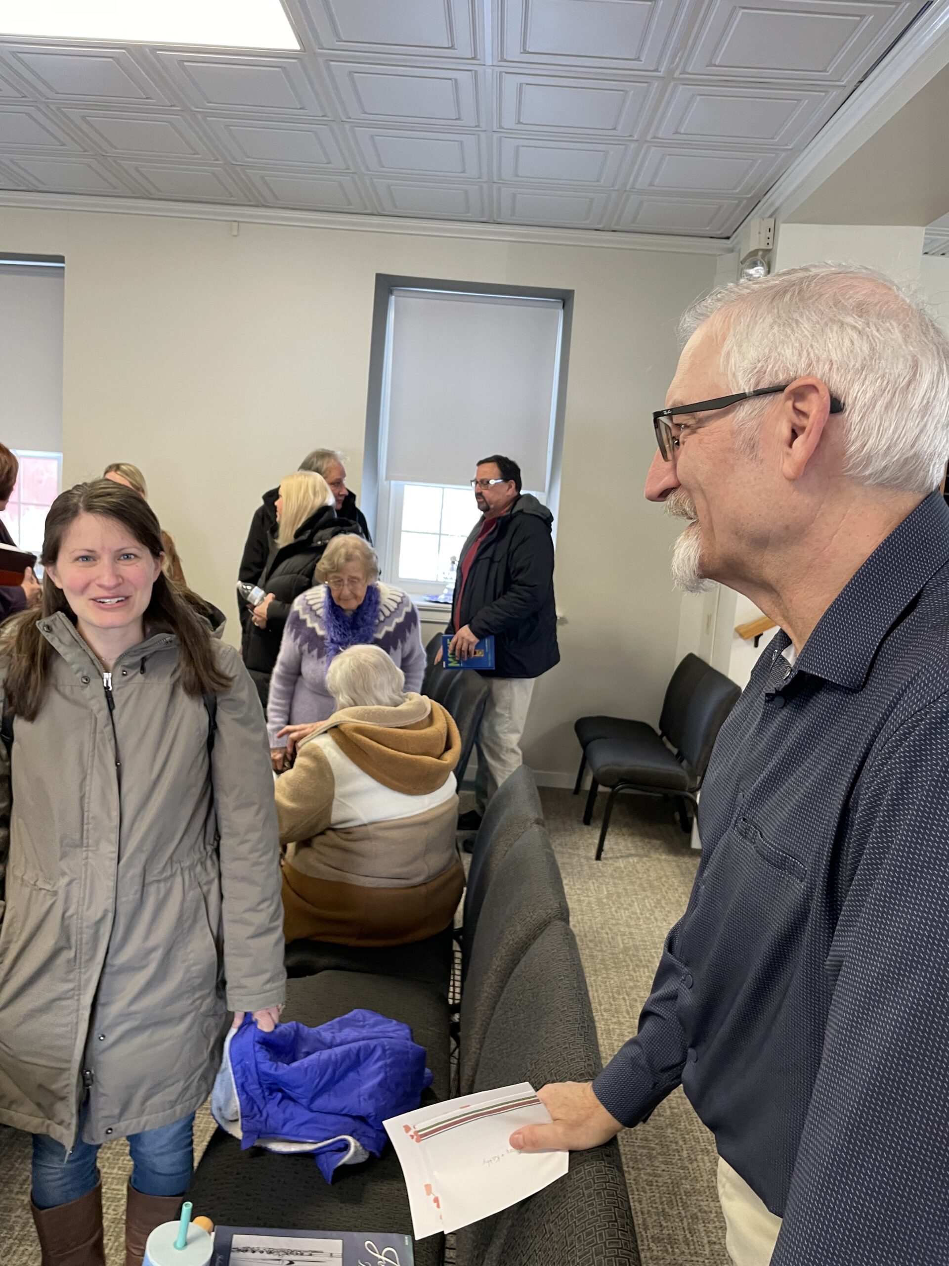 Many people stick around briefly to talk or ask questions, but there’s no pressure. We continue to serve tea and coffee. You’re welcome to connect—or head out whenever you’re ready, but we hope to meet you and get acquainted!